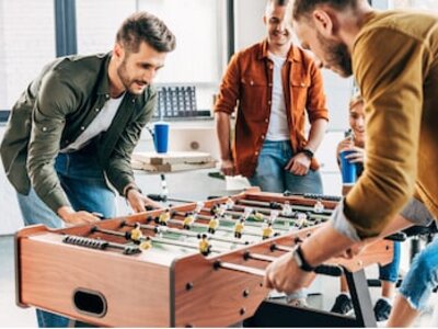 Tischkickern, dazu leckere Grillwurst und Hamburger in der Hand. Das erinnert an Stadionatmosphäre. Cooler kann Dein Event kaum sein.